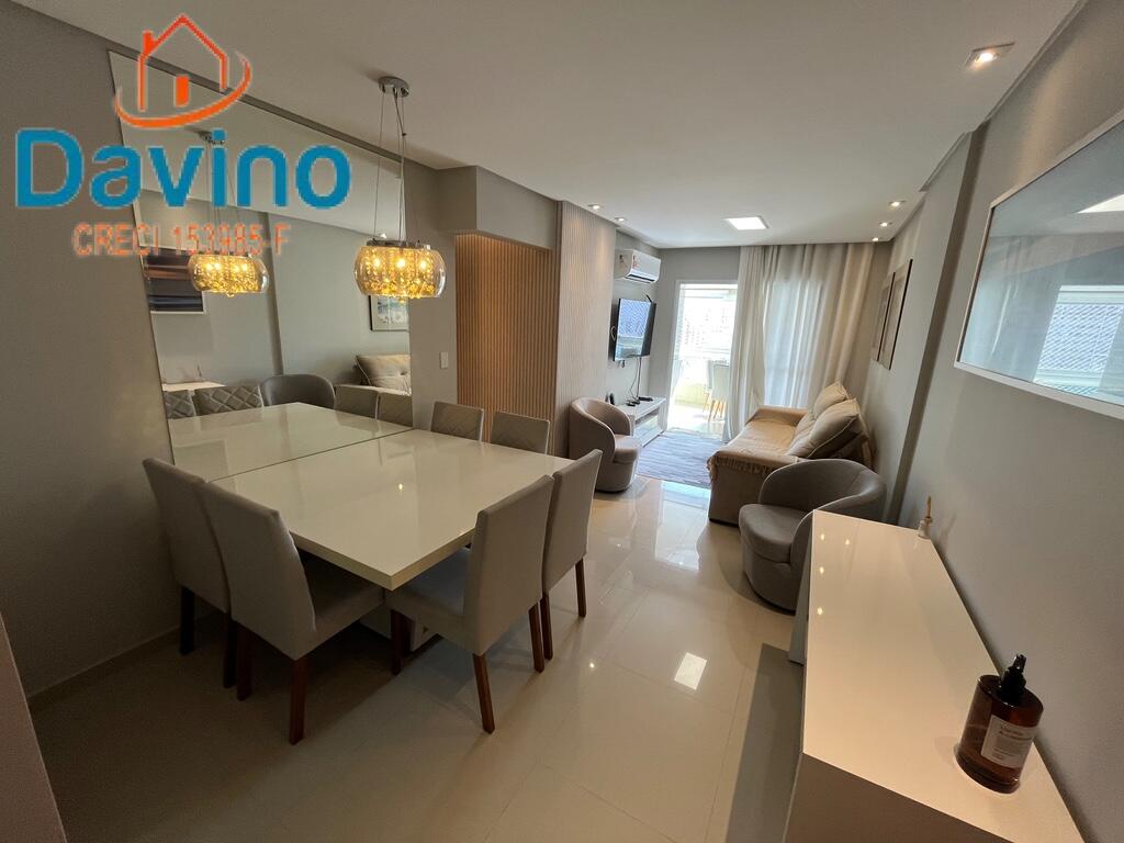 03 dormitórios, sendo 01 suíte, sala dois ambientes, sacada gourmet com vista para o mar, banheiro social, cozinha, área de serviço e duas vagas de garagem.