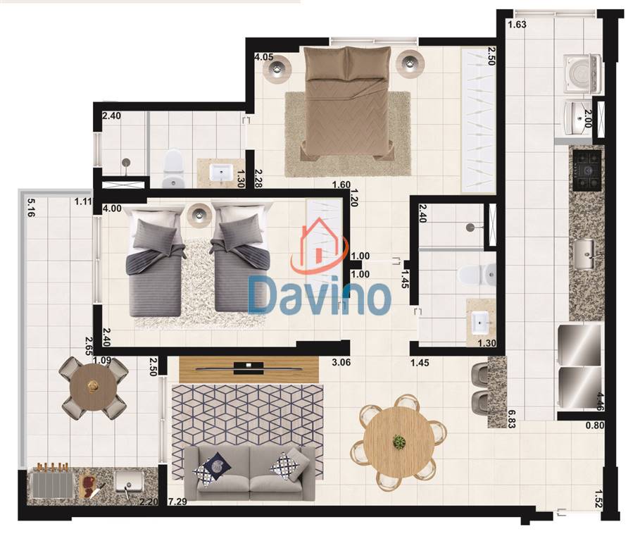 2 DORMITORIOS UM DELES SUITE