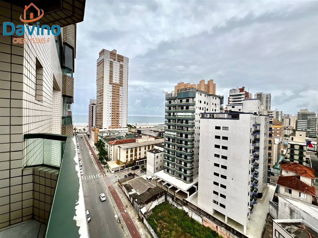 São 98 m2 distribuídos em: Sala para 2 ambientes + Sacada Simples, Vista Mar, Andar Alto, Sol da Tarde., 2 Quartos sendo 1 suíte com sacada. Cozinha GRANDE (Planejada).e com Lavanderia.