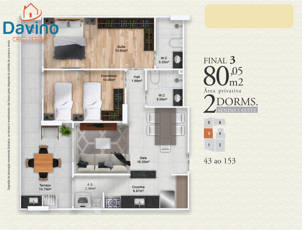 Abaixo seguem as unidades disponíveis, com metragem de área útil (interna e sacada do imóvel), e valor atual mensal de condomínio.