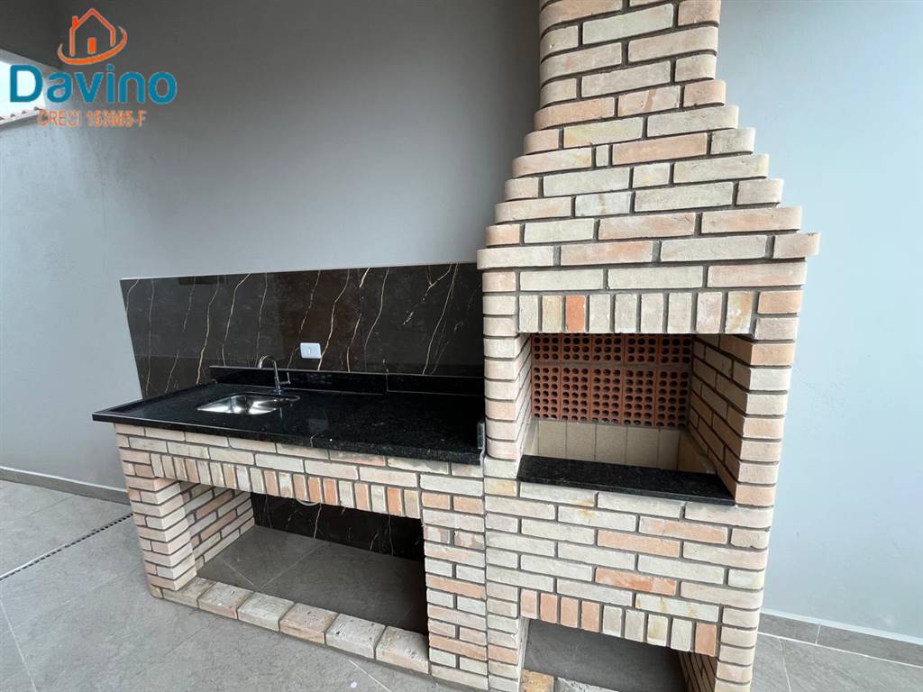 ✔️ Área gourmet com churrasqueira em tijolinho e pia em granito