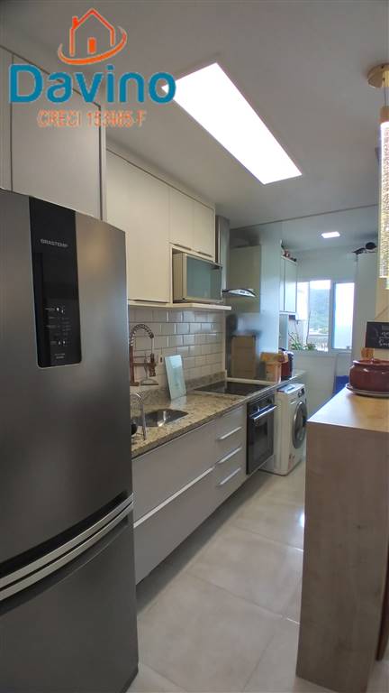 59m² área útil, 2 dormitórios (1 suíte), Sala dois ambientes integrando com cozinha e sacada gourmet com vista livre, panoramica mar e morro Xixova. sol da amanha, Cozinha estilo americana clean, com lavanderia, 2 banheiros 1 suite 1 social, 1 vaga de garagem.