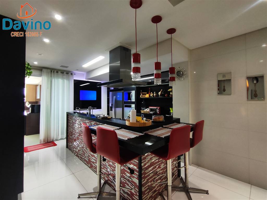 O imóvel possui 250m² de área útil, bem distribuído em 4 suítes, sendo 1 suíte master com hidromassagem, 1 lavabo, home office com banheiro, área técnica, sala ampla para 2 ambientes, varanda gourmet com vista mar, cozinha espaçosa, área de serviço e 3 vagas de garagem demarcadas.
