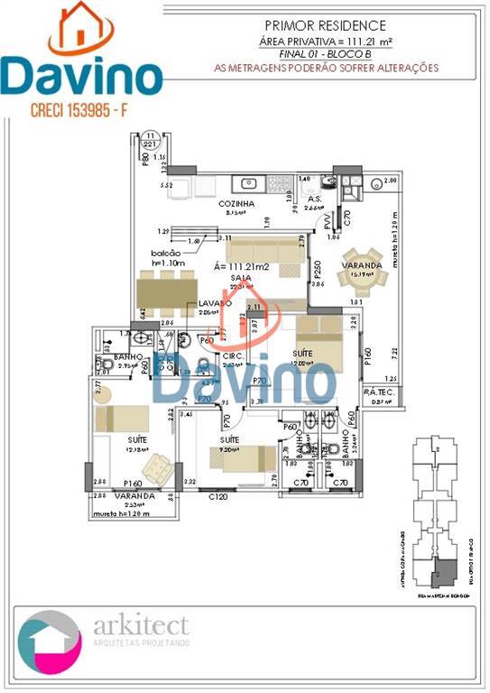 PLANTA COM 111,21M DE AREA UTIL, DIVIDIDOS ASSIM;