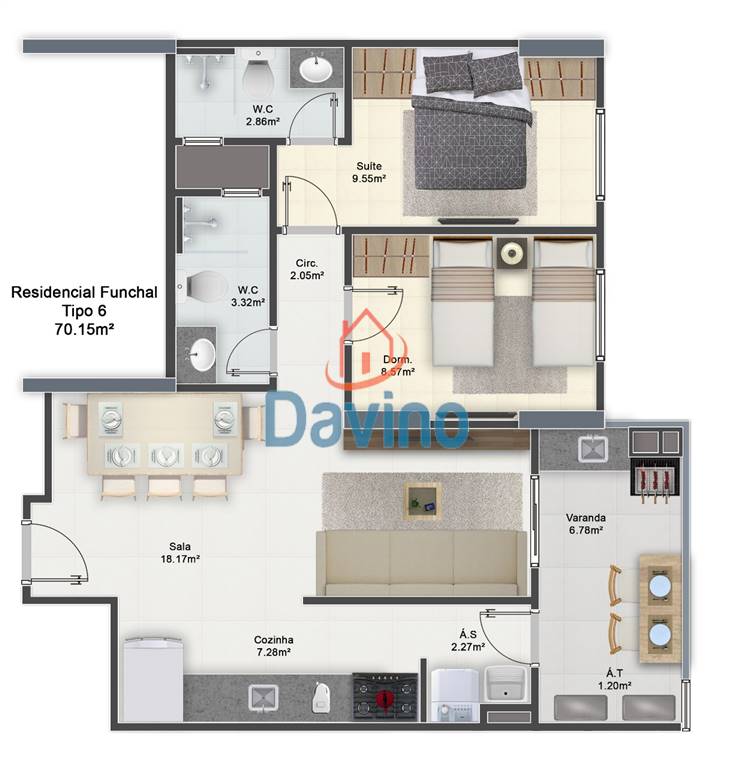 Área Útil70,00m²