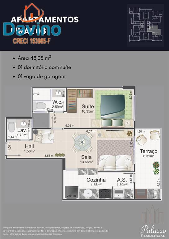 Área Útil48,05m²