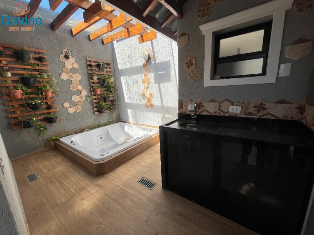 área gourmet com churrasqueira, banheiro e spa (5 pessoas).